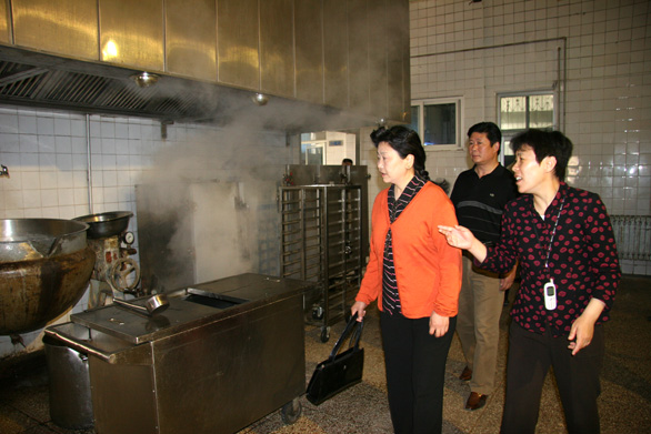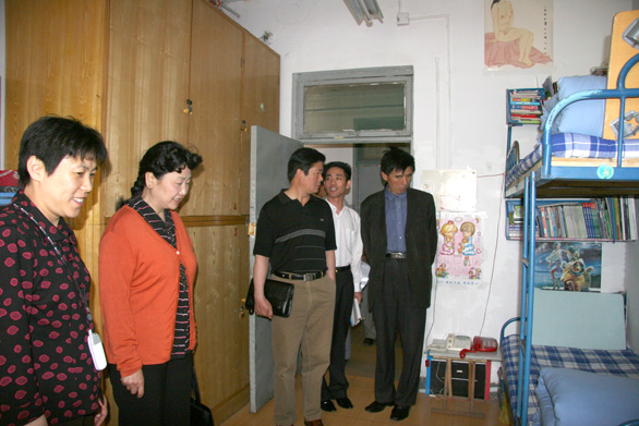 座谈结束后,张平一行对我校教学楼、办公楼、食堂、学生公寓的卫生情况作了检查。