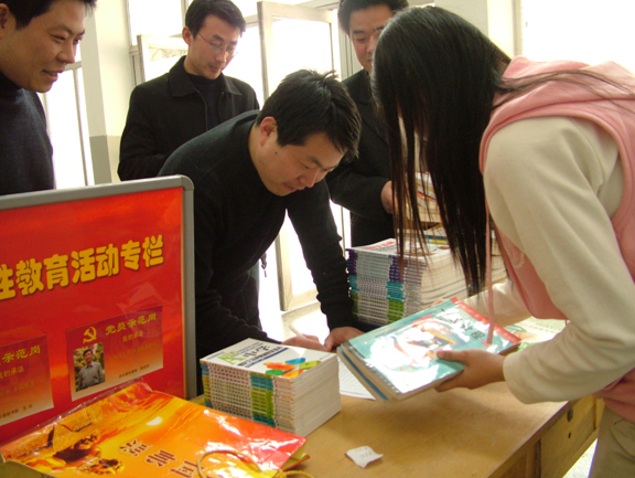 在落实学院党委组织部下发的《关于进一步学习贯彻党章,认真做好先进性教育活动巩固和扩大整改成果工作并进行“回头看”的通知》的活动中,机关各党支部积极组织党章专题学习,开展“学习党章,保持党员先进性知识竞赛”和组织党员对个人整改措施落实情况进行一次检查的活动。各党支部也积极响应由机关教务科研党支部倡议的,党员奉献日“捐书助学”活动。3月30、31两天的下午,办公楼的门厅里,捐书受理台前,出现了党员同志以支部为单位捐书的队伍,更可喜的是其中也有的是向党组织写了入党申请书,积极要求加入党组织的入党积极分子也参加了此次“捐书助学”党员奉献日活动。