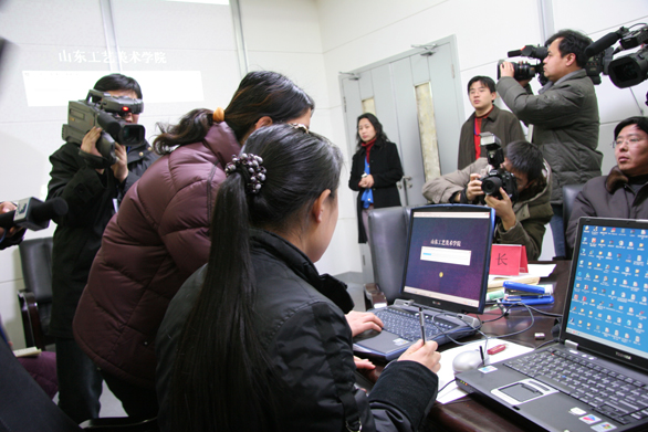 2月17日上午9时30分,现场抽题在舜耕国际会展中心一楼会议室进行,副院长刁在祥,纪委副书记王进生,教务处副处长