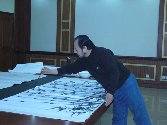 院长亲自挥毫泼墨,带领诸位画家为部队驻军现场创作了多幅国画作品。