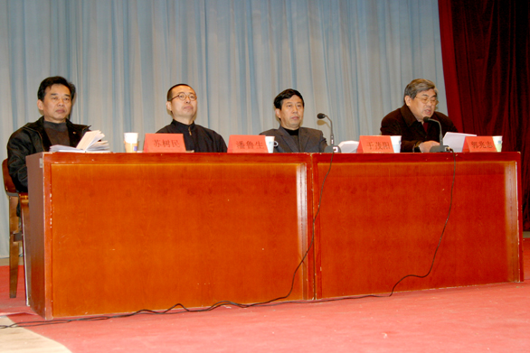 、郭兆志、李世平、王秀存、李新、刁在祥、张云龙、孙凤刚出席会议。会议由先进性教育活动领导小组组长、党委书记于茂阳主持。先进性教育活动领导小组副组长、党委副书记郭兆志作情况通报。学院全体共产党员、入党积极分子、群众代表、民主党派、党外人士代表参加会议。