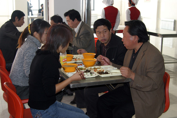 住和食是学生入住的关键问题,食堂受到了院领导的特别重视。院领导于茂阳、王秀存、刁在祥、张云龙提前视察食堂,等候学生前来用餐。装潢系04级品牌与企划班的李晴晴、赵晓云最先来到餐厅,于书记热情邀请她们一同用餐,并进行了亲切交谈。李晴晴说:“院领导十分关心我们的住宿情况,这使我们感受到院领导对学生的关怀,在这里有家的感觉。新食堂干净、宽敞,饭菜可口又便宜,我们非常满意。”