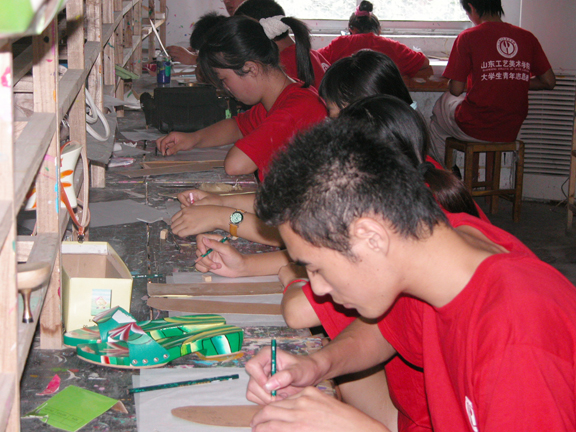 12日,同学们终于迎来一段紧张的时刻——润乐杯鞋样设计大赛。上午,实践小队24名同学在车间一字排开,上底色、画图案、涂正稿,紧张而细致的进行着设计,大家都憋足了一口气——要做出自己最好的成绩。下午,29套鞋样设计作品摆满了评分台。经综合评定,产生了一、二、三等奖,这是对同学们为期一周社会实践劳动成果的肯定。