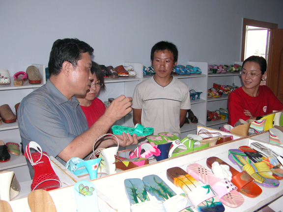 社会实践小分队到达的当天下午,兖州润乐工贸有限公司总经理及公司领导亲临车站迎接大家并派专人把同学们带到公司事先安排好的宿舍。稍事休息之后,董事长李瑛带领大家参观了公司的样品设计展厅。公司创意独特,设计精美的鞋样使在场的每一位同学惊叹不已。他向同学们介绍了鞋样设计的发展情况,并指出同学们应在社会实践中锻炼自己,将平日所学的知识运用到实际创作,从而使自己的各项能力得到提升。参观展厅结束后,公司领导就公司的发展情况、公司的设计理念等一系列问题进行了回答和介绍,同学们对公司的基本情况有了大体的了解。