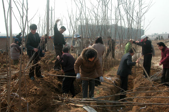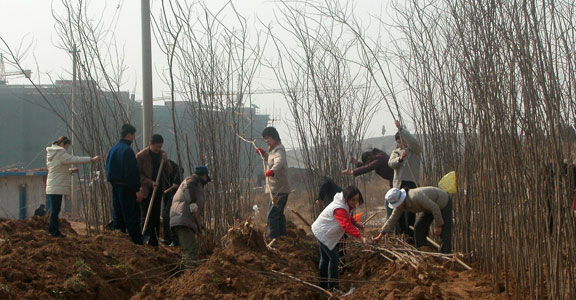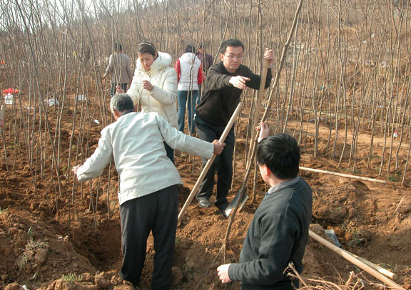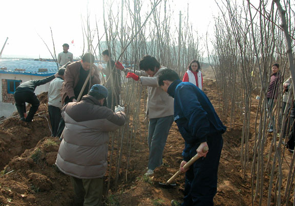 机关党员、职工义务植树,为新校区建设出力