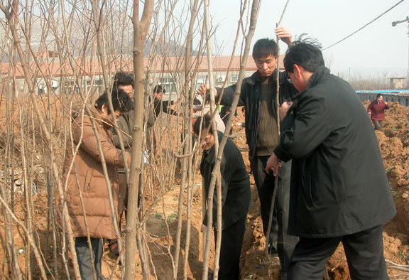 机关党员、职工义务植树,为新校区建设出力 [附图]