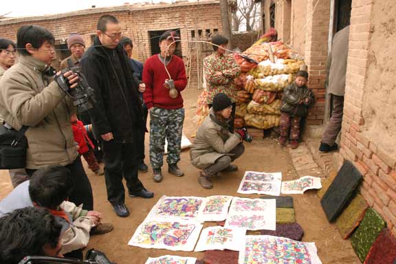 教授了解到大赵村历史上半数人家都在制作年画,堂号众多,而现在仅存3户尚在惨淡经营时,他呼吁加强对民间文化生态的保护力度,强调其学术研究的社会应用性,发展民间文化产业,让古老的民间文化艺术精品为现代农村的文化建设和经济建设服务。