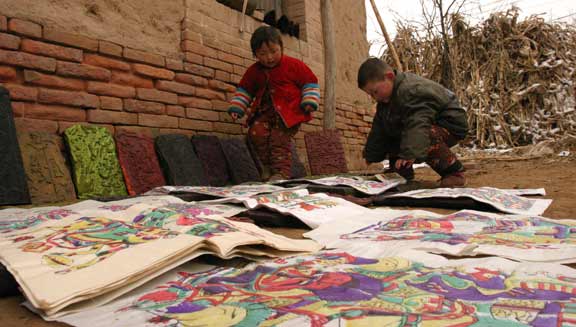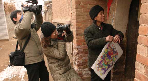 自腊月20日起,“中国民间文化遗产抢救工程”山东工作组对聊城梁水镇大赵村现存年画印制情况进行了系统地跟踪调查与研究。工作组成员包括