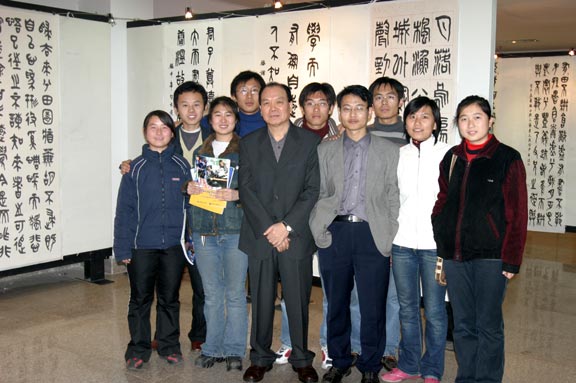 书法装饰艺术专业是我系新设置的一门学科,拥有雄厚的师资力量,该学科自创建半年时间内,即已引起了书法界和教育界的广泛关注。该学科创建伊始,于茂阳书记便提出了“探索书法社会应用功能”的口号,走一条书法技能与工艺结合的道路。不仅在学科设置上摆脱了书法教育寄人篱下的局面,又充分考虑了书法艺术的可持续发展空间。这一办学理念和教育模式的实践在全国尚属首次。