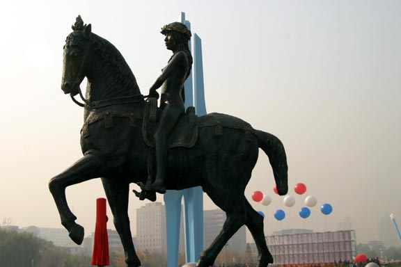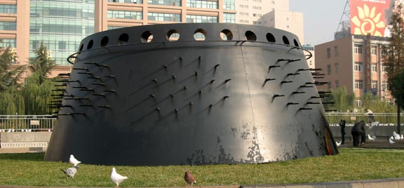 在泉城广场现场,16位法国当代艺术家的十余组大型户外雕塑和装置艺术作品正式展示,众多游人纷纷驻足观赏。
