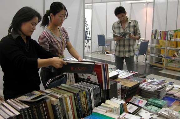 参加此次书展的并不只是书刊、报纸。各色各样的复习资料也出现在展厅中,丰富多彩的大学生活让我们几乎淡忘了苦闷的高三生活,眼前的复习资料,勾起了我对高三生活的回忆……分,仍是学生的命根呀!《视野》、《读者》、《青年文摘》等青年人的“宠儿”也在此次书展中大放异彩。