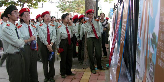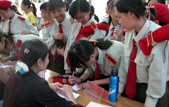 9月18日一大早,院学生会骨干成员等一行人已抵达北校区,他们在军训场地旁设立了临时咨询处,随时准备迎接前来咨询的新生。院学生会主席张冰等人还深入军训场地了解了新生们的军训及生活状况,对同学们反映的问题进行了详细的解答。院学生会生活部为了方便新生尽快适应驻济生活,还特意做了一块大型的生活服务展板,上面注明了济南市的文化购物、医院、车站、旅游景点、电影院等地的名称、地址及乘车路线,内容详细,路线清晰,给新生们带来了贴心的实惠。