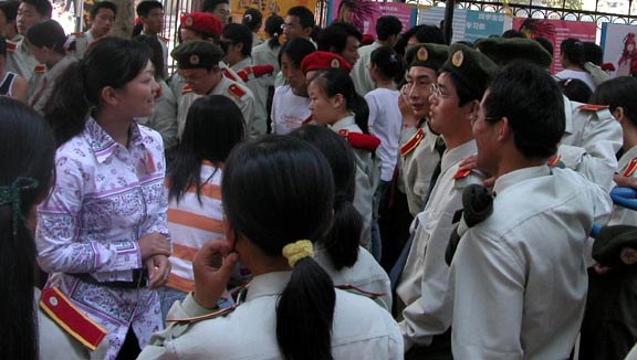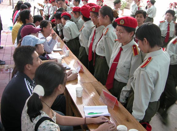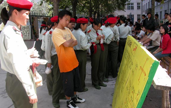 在对新生进行慰问的同时,院学生会的纳新宣传工作也同步进行。院学生会各部将事先做好的本部门宣传展板在广场周围一字排开。宣传展板内容包括各部门职责、口号及纳新要求等内容,以其极具个性的版面和丰富的内容吸引了众多有志加入学生会的新同学。上午军训结束后,新生们纷纷来涌到到自己感兴趣的相关部门负责人面前,询问有关该部门的职责、纳新要求、注意事项、纳新时间等问题,咨询场面火爆。面对新同学提出的各式各样的问题,各部门负责人都耐心的给予了最详细的回答。