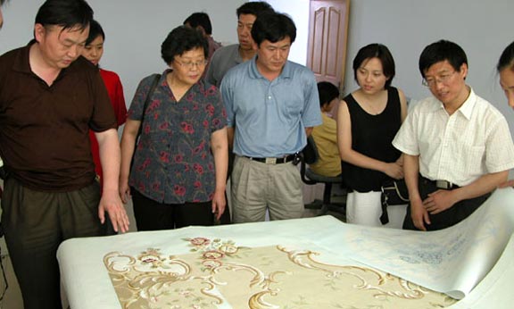 上午,张云龙副院长一行慰问了皇冠厨具厂工业设计系小分队和创艺地毯公司现代手工艺术系小分队的同学。七月的骄阳似火,张云龙副院长称赞了同学们不怕吃苦,勇于实践的精神。在博兴皇冠厨具厂,皇冠公司经理陪同张云龙副院长、院团委王妍副书记、工业系办公室主任刘历生、团总支书记代江涛、院团委于浩等人参观了皇冠公司的产品展厅。皇冠公司经理介绍了我院工业系同学在公司的实践情况。张云龙副院长观看了工业设计系邵长青等同学为公司设计的厨具方案和导示系统,他充分肯定了方案对于企业的价值,希望同学们在实践过程中能够真正深入到企业当中,了解整个企业的制作流程。在博兴创艺地毯公司,孙培栋经理陪同张云龙副院长一行参观了创艺公司的地毯制作流程,并介绍了我院现代手工艺术系同学的实践情况。张云龙副院长在观看了我院同学的设计方案后说,“暑期实践就是要让大家真正的了解一种工艺的整个运作流程,同学们要在实践结束后对自己的设计作品如何投入生产做到心中有数”。参观结束后,张云龙副院长、现代手工艺术系书记李秀梅、副主任段建华、卢洪祥同创艺公司孙经理就我院学生的实践情况进行了座谈,并深入交流了校企合作的发展意向。