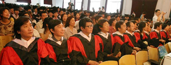 随后,毕业生谭文芳同学带领全体毕业生进行了毕业宣誓。张云龙副院长宣读了表彰优秀毕业生的决定;优秀毕业生李煜同学代表全体毕业生发言。学院领导为毕业生颁发了毕业证书,并向省级和院级优秀毕业生颁发了证书。李新副院长宣读了学院学位委员会关于授予2004届本科毕业生学士学位的决定。