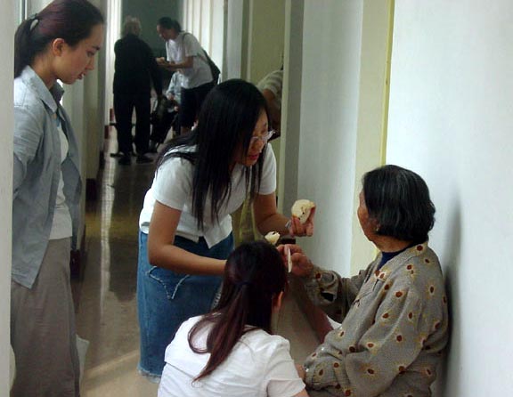 经过近一个小时的行程,同学们在九点多钟赶到了福利院,受到了院长和老人们的热情欢迎。在送上为老人们准备的水果后,大家便开始分头行动了。同学们将这些老人们当成了自己的爷爷奶奶,对他们进行了无微不至的照料。“老吾老以及人之老,幼吾幼以及人之幼”的传统美德在这里得到了真实地体现。