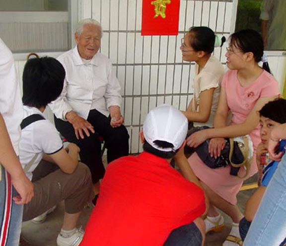 原定的两个小时的活动时间很快就过去了,为了不妨碍老人们的正常生活,同学们不得不向老人们告别。听说同学们要走,一位年近九十岁拄着拐杖的老奶奶执意将同学们送出了敬老院。