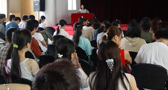 本场讲座的主题是:中国传统家具设计的继承与发展。上午9时,大学生活动中心早已座无虚席。但由于突然停电,导致话筒和幻灯屏幕无法使用,望着同学们那一双双渴求知识的眼睛,王福云老师决定继续进行讲座。在讲座的过程中,王老师引领同学们系统地回顾了中国传统家具设计的历史脉络,进一步了解了中国传统家具的设计特色,剖析了中国现代家具的设计方法。同时还给同学们介绍了世界上有名的家具设计大师以及他们的经典设计作品。在这种条件下,场下的同学们都自觉保持会场安静,只听见沙沙地记录笔记的声音。中间休息时,同学们纷纷到台前同王老师攀谈,对于同学们提出来的疑问,王老师非常热情地给予了解答,并给同学们推荐了很多有关家具设计方面的书籍和网站。 讲座进展得非常顺利。