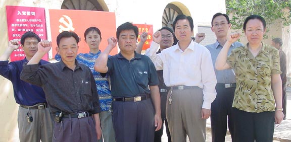 5月22日上午,机关党总支一行来到位于群山环抱之中的西柏坡,参观了中共中央旧址、领袖故居、西柏坡纪念馆等。面对蜿蜒清澈的滹沱河,松柏苍翠的柏坡岭,参观当年毛泽东等老一辈革命家的极为简陋的办公室、住所,遥想当年领袖们的音容笑貌,深切缅怀老一辈革命家的丰功伟绩。在七届二中全会会议旧址前,面对低矮的房屋、简陋的桌椅,大家静静的站立、静静地吸收精神的力量,似又闻五十四年前,毛泽东在这里向全党提出的“两个务必”要求的谆谆告诫声。院纪委书记刁在祥同志率大家庄肃地站在七届二中全会会址门前宣誓:“坚持‘两个务必’,情为民所系,利为民所谋,权为民所用,绝不让形形色色的灰尘染污自己的灵魂。”