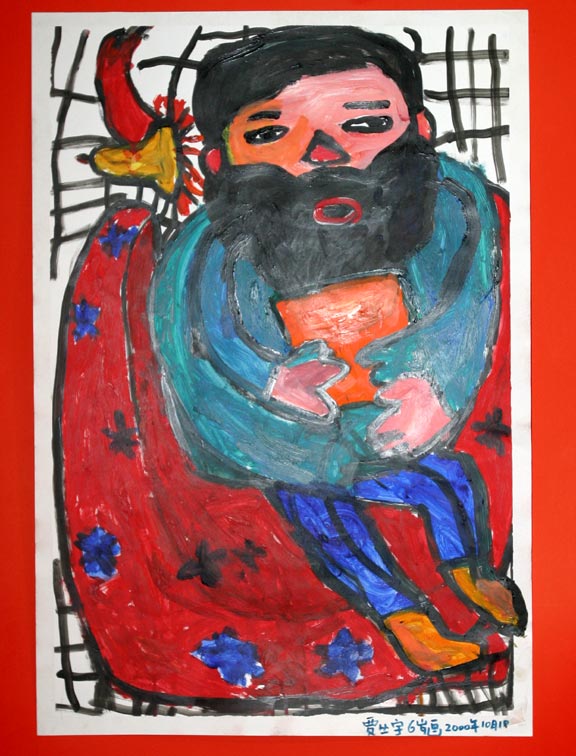时下,“美术热”可谓史无前例。社会上针对少年儿童的培训班层出不穷,家长对孩子的审美教育已列入家庭的重要事项,中小学教育中美术课也已成为“必修”。这种现象已快速地成为现代社会文明的标志,但是,静下心来想想,“艺术”其实并不仅仅意味着一种职业的选择,它更是一种修养的选择,是一种境界,是人类永恒的精神家园。美国第二任总统约翰逊曾经在国情咨文中通俗地表述过他对“艺术”的理解:我们这代人责无旁贷必须选择战争,因为我们只有选择了战争,我们的下一代才能选择物理、数学和化学,而他们的下一代,也才能有条件去选择文学和艺术。艺术代表着人类精神上的终极追求。然而,在社会实际操作层面,我们当前的少儿美术教育却并不尽人意,它已悄然偏离“艺术”的本质,在市场经济发展轨道中,受物欲的驱使,走向纯粹的商业利益。但是,“十年育树,百年育人”,针对孩子开展的艺术教育是育人之根本,站在我国大力提倡素质教育的背景下也许更易于理解艺术教育的重要性,如果教育方法、教育宗旨发生了偏差,将会影响一代人,甚至几代人的审美境界和精神指向。当我看到贾丛宇小朋友的画后,面对少儿美术教育我有了新的认识与感悟。首先要感谢孩子的母亲因材施教,从兴趣培养爱好,从爱好提升审美,从审美教育达到对孩子全面素质培养的目的,使笔者看到了下一代儿童全面素质教育的提升。