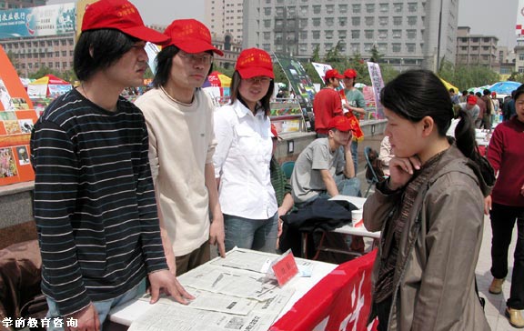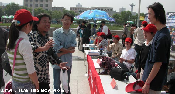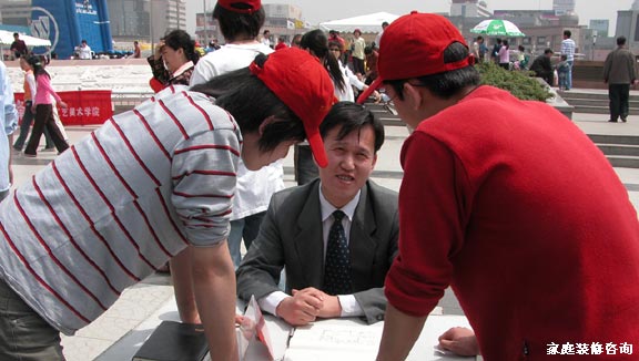 在各种活动火爆进行的泉城广场,志愿者的小红帽在人群中格外显眼,使得工艺美院“设计先锋”咨询活动成为广场一道亮丽的风景。各系部咨询点在广场中心的一片空地上一字排开,不一会儿就吸引了众多前来咨询的市民。市民们就居室装修、服饰搭配、学龄儿童艺术教育、摄影技术、艺术高考等多方面的内容向工艺美院各相关系部的志愿者进行了咨询。