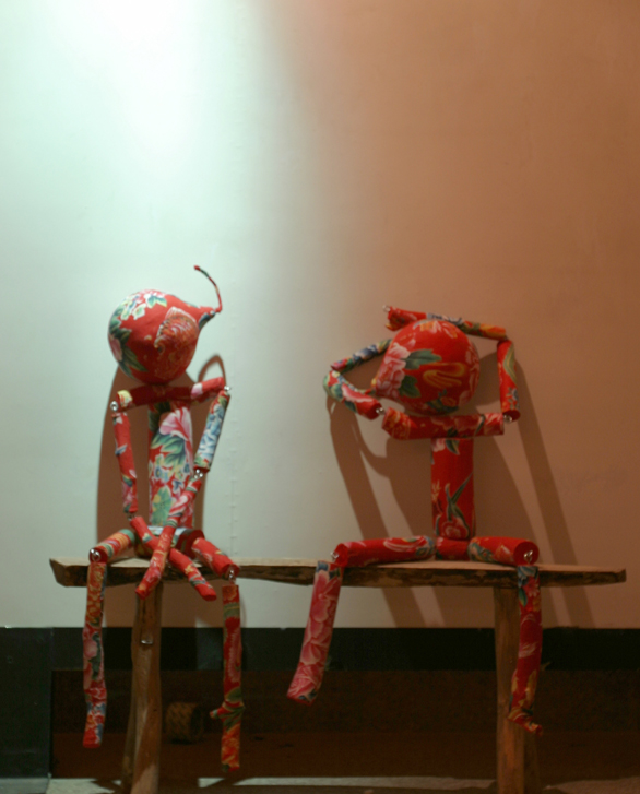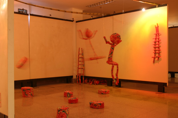 此次展出的徐静宇作品以树干及葫芦为主要素材,裹以传统花布,完全突破了以往雕塑用材及技法的局限,具有独到的创新性,展现了作者对生命及艺术的理解,使个性与创新达到了一种近乎完美的结合。