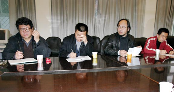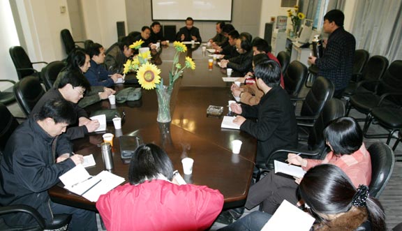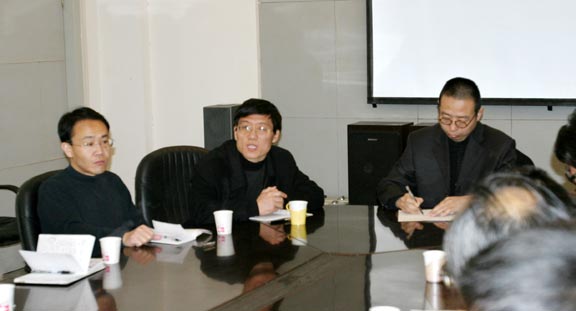 副处长部署了今年的毕业设计展览工作,并通报了学院将2004年定名为“教学研究年”的工作思路。科研处胡希佳处长通报了第十届全国美展的进展情况以及本学期的筹展安排。
