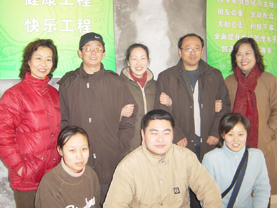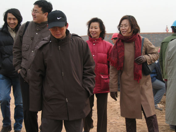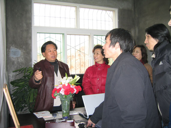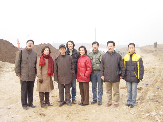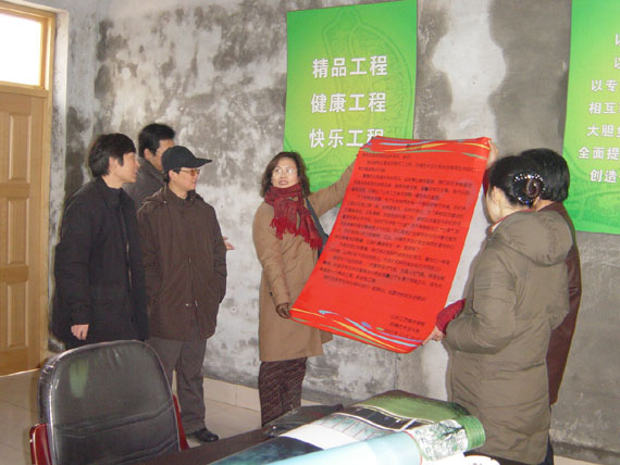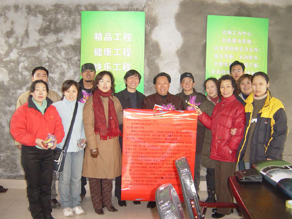 在2004年新年即将来临全院学生同庆元旦之际,我院环艺系领导及老师(丁宁主任、纪卫红书记、黄美玉系办主任、邹小红辅导员、栾斌老师等教职工及学生代表)不忘在新校区建筑一线上的老师们,于2003年12月30日到新校区为依然在寒风中工作的建设者们送去了一份真挚的慰问及祝福。环艺系的师生亲手为新校区的领导及老师送上了备往已久的祝福及礼品,让工作在新校区的老师们无比的感动与欣慰,在来书记的带领下师生们来到施工现场,由王秀存副院长亲自介绍了各期工程的进展情况。