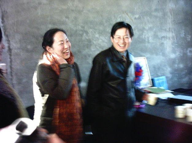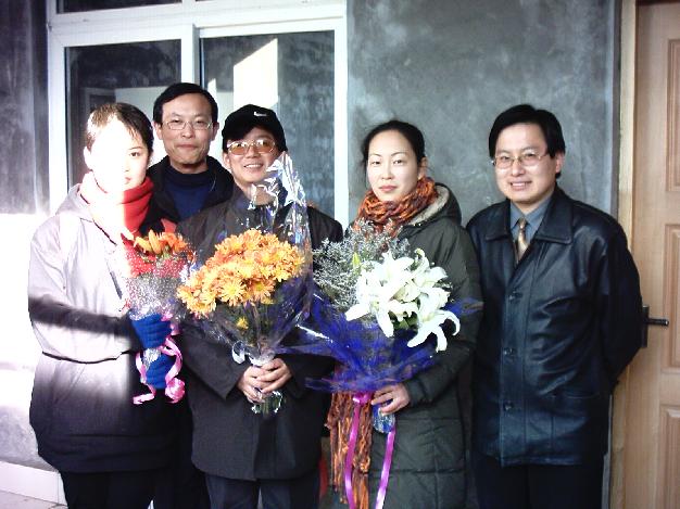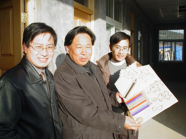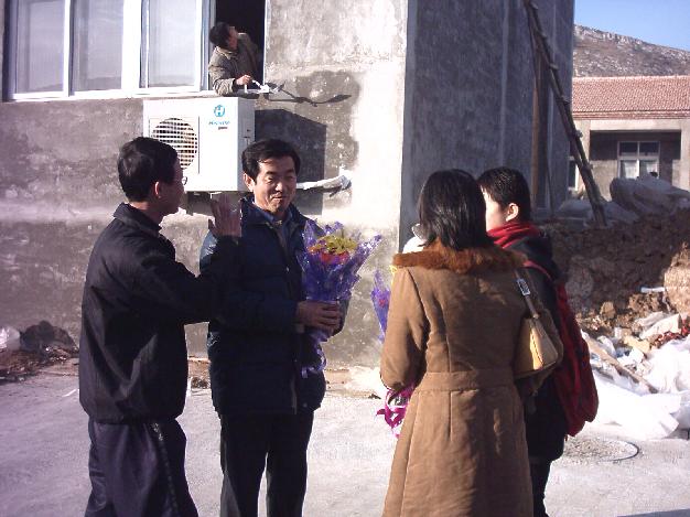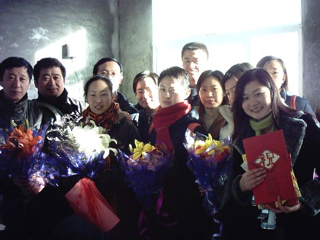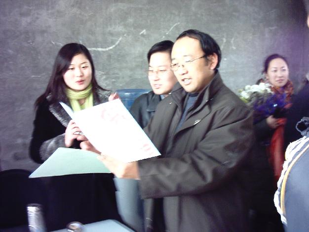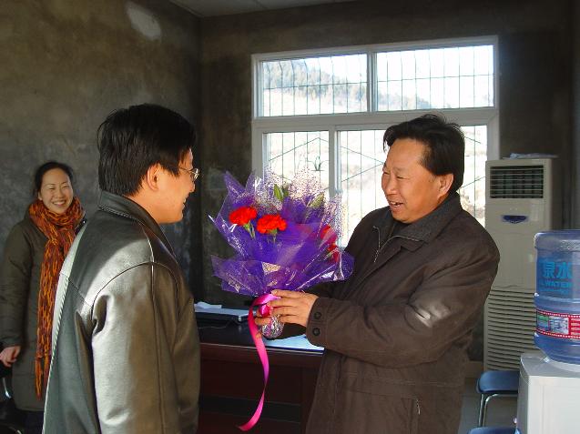 在总指挥王秀存副院长办公室,服装系和工业系的学生代表将一面签着全院学生名字的小匾额送到了王院长手上。当同学们献上鲜花和亲手制作的贺卡时,王院长拉着同学们的手久久不愿松开,他动情的说,大家刚刚离开学校,入住工地,广大同学就时时刻刻的想着我们,先是来义务劳动,解了我们人手短缺的燃眉之急,又在今天圣诞节跑来看我们,让我们倍感温馨,非常感谢同学们的关心和牵挂。请同学们放心,建设者们一定会将一个整齐、干净、宏伟、壮丽的新校交到全院师生手里。当看到同学们手中的贺卡时,王院长一个个的欣赏着,他说,同学们的心真细啊,这不仅仅是一张贺卡更是一件件工艺品,是同学们的一颗颗真心啊,是我们收到的最珍贵的礼物,这些礼物都将陈列在新校区建设展览馆里,作为历史永远的写在工艺美院的发展史上。