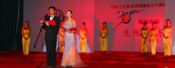 10月26日,山东工艺美院30周年校庆系列活动之一,以《无限深情》为主题的大型服装表演在山东国际会展中心会堂拉开帷幕。王军民副省长观看了这次演出。王军民副省长对我院坚持“办出特色、注重建设”的原则,不搞庆典仪式,通过举办系列学术活动,高扬人文旗帜,倡导创新精神,与海内外校友一起切磋技艺、研讨理论的做法给予了充分肯定,并向我院30周年校庆表示了祝贺和祝福。
