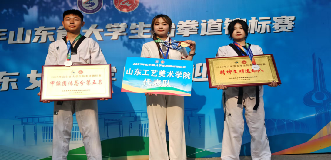 6月8日,由山东省学校体育协会主办、山东女子学院承办的2025年山东省大学生跆拳道锦标赛在济南圆满落幕。经过激烈角逐,我校代表队凭借优异表现,最终斩获1枚金牌、2枚银牌和1枚铜牌,并以团体总分第五名的成绩创下我校参与省级高校跆拳道赛事的历史最佳战绩。