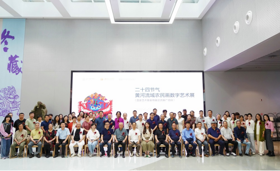 《二十四节气:黄河流域农民画数字艺术展》国家艺术基金传播交流推广资助项目由院长董占军担任总策展人、副院长韩文涛担任执行策展人、科研创作处处长殷波担任学术顾问、教务处处长顾群业担任项目负责人。展览以“艺术+科技”的方式推动传统文化创造性转化。巡展将沿黄河流域设置八处巡展地点及新疆地区展开,搭建黄河流域文化协同发展的桥梁。从农民画的乡土情怀到数字艺术的当代表达,这场巡展不仅是一次文化溯源,更是一场面向未来的创新实验。通过作品聆听黄河与节气的千年对话,见证中华文明在新时代的蓬勃生机。