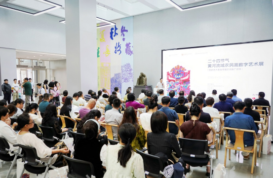 开幕式后,同步举办了《二十四节气:黄河流域农民画数字艺术展》学术研讨会。来自高校、文化机构的专家学者围绕“解析农民画乡土美学”“数字技术赋能农民画多维呈现”“重构农民画叙事语言”“农民画符号的文创IP转化路径”“数字时代民间艺术传承生态构建”等核心议题展开深入研讨。与会专家一致认为,数字技术是激活传统文化基因的关键引擎,需以学术深度与创新实践持续探索民间艺术的当代转化范式,构建可持续发展生态。