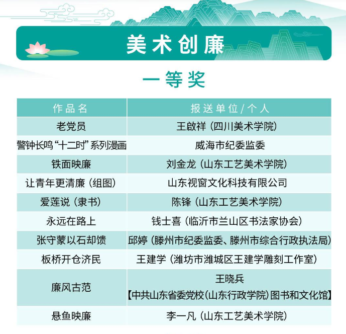 第二届“青未了”杯廉洁文化作品创作大赛获奖名单(部分)