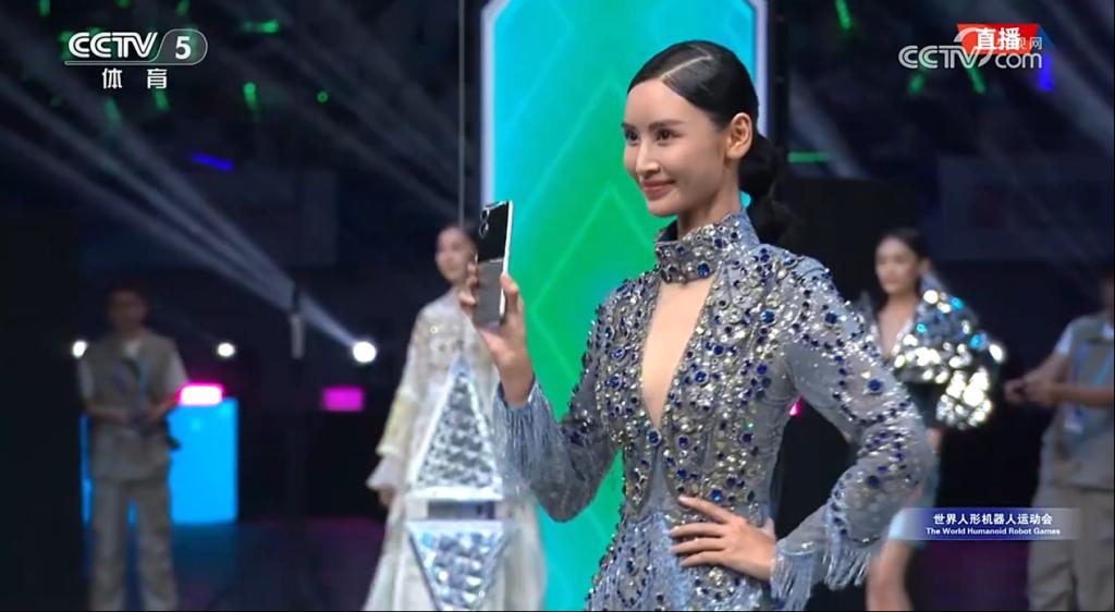 开幕式通过中央电视台体育频道、央视新闻客户端及央视网等平台进行全程直播。我校服装学院16名优秀学生受邀参与开幕式表演,与人形机器人共同演绎科技与艺术融合的时装秀《天工霓裳》。该节目通过动态展示,将人形机器人运动的精准性与力量感与传统服饰的韵律美完美结合,生动诠释了“智竞向未来”的赛事主题。表演过程中,学生与机器人的默契配合与专业表现,充分展现了新时代中国青年在艺术与科技融合领域的创新成果。