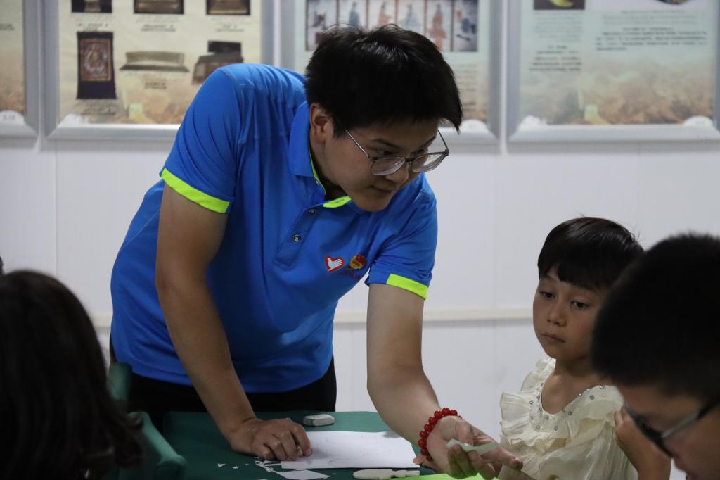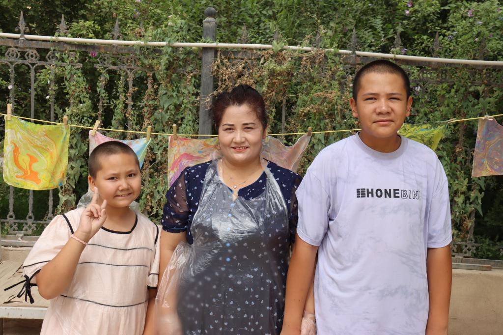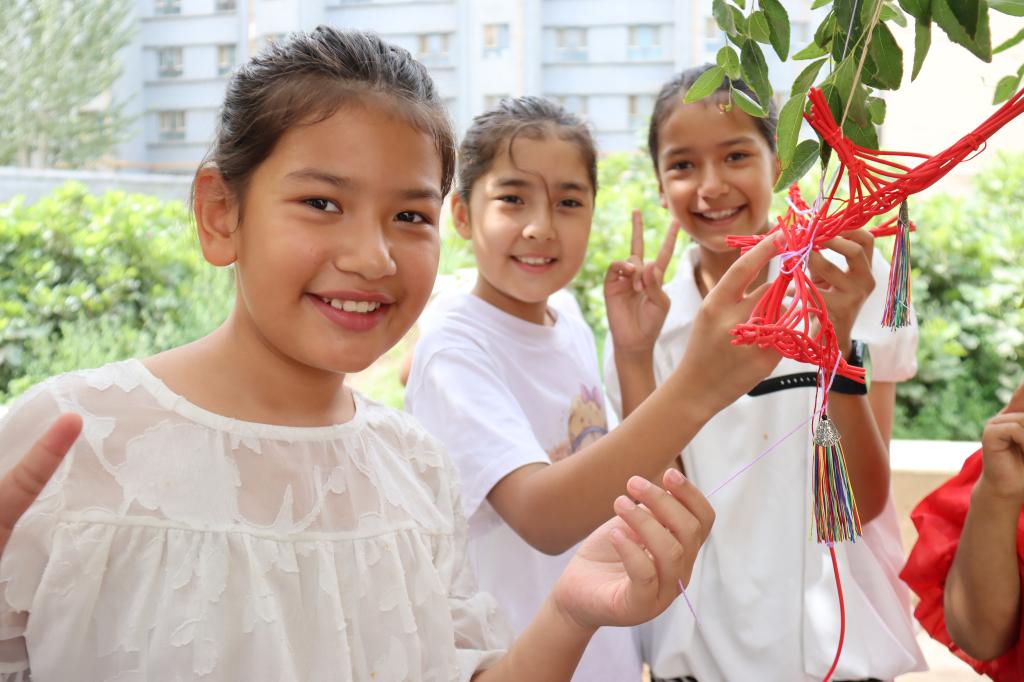 家长开放日,阿卜杜塞米和孜拉莱兄妹正在与妈妈共同体验非遗课程
