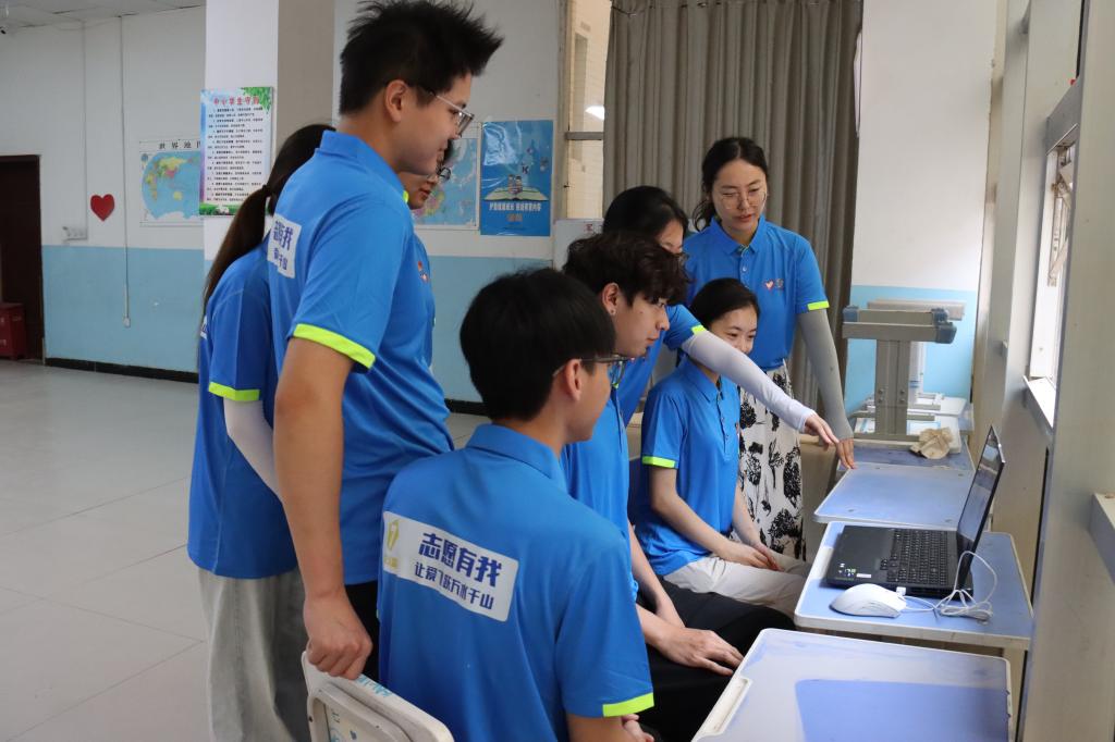 教学筹备工作早在出发前便扎实推进。团队提前对接当地教育局、学校和社区,调研学科缺口,有针对性地选派相关专业的志愿者开展为期两周的“备课攻坚战”,反复打磨支教方案。结合学校专业优势,构建以“文化传承+创新实践”为核心的8大主题课程体系。其中,“非遗工坊”系列课程创新性地将思政教育元素融入艺术实践:在水拓丝巾创作中,师生共同设计象征民族团结的“石榴籽”图案;在“红船柳编”特色课上,志愿者一边教授传统柳编技艺,一边讲述“红船精神”和党的光辉历史,让红色基因通过指尖技艺浸润心田。从知识点梳理到课件制作,从互动设计到课堂节奏把控,每个环节都经过多轮研讨优化,确保为边疆学子带来最优质的教学体验。