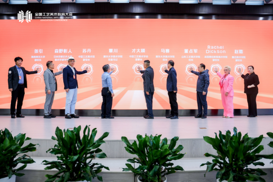 中国工艺美术学会党委书记、理事长才大颖,中国工艺美术学会副理事长、教育专委会主任、清华大学美术学院院长马赛在开幕式上致辞。开幕式由中国工艺美术学会教育工作委员会秘书长、清华大学美术学院党委副书记王晓昕主持。开幕式上,院长董占军,中国工艺美术学会理事长才大颖,中国工艺美术学会副理事长、教育专委会主任、清华大学美术学院院长马赛,清华大学美术学院党委书记覃川,中国工艺美术学会学术委员会委员、中国工艺美术馆副馆长苏丹,英国格拉斯哥美术学院副校长Rachel Dickson,日本京都艺术大学美术学部学部长森野彰人,鲁迅美术学院副校长赵璐,海南师范大学副校长张引,共同启动“第三届全国工艺美术教育大会”。开幕式后,举办了以“创新传承·双向赋能”为主题的工艺美术院校长学术论坛和两场学术对话会。