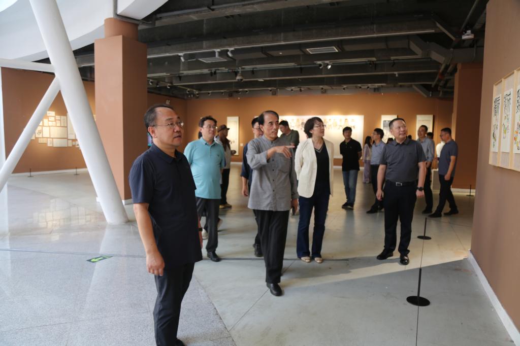 在展览现场,校领导认真聆听李学明教授对作品创作灵感、艺术流派传承及背后故事的详细讲解,对作品所展现出的深厚艺术造诣、鲜明的个人风格及浓郁的文化底蕴给予高度评价。校领导表示,此次展览不仅为师生带来了一场高质量的视觉盛宴,更为校园文化建设注入了鲜活力量,希望以展览为契机,进一步激发师生对中国画艺术的热爱与探索热情。