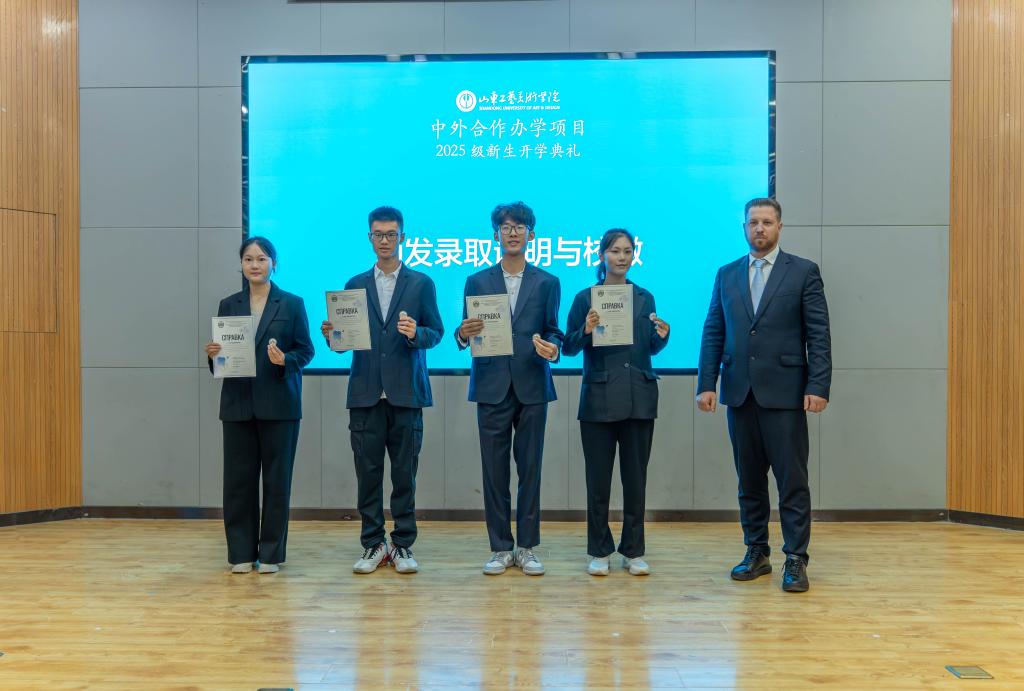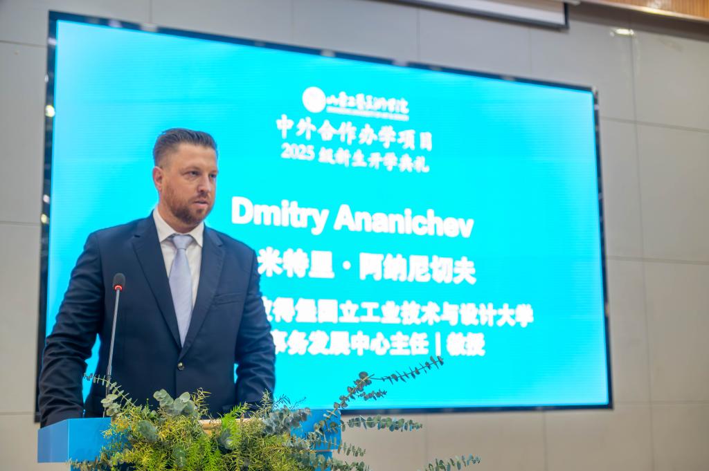 典礼期间,俄罗斯圣彼得堡国立工业技术与设计大学亚洲事务部主任德米特里・阿纳尼切夫教授为2025级新生代表颁发了入校证明与校徽。