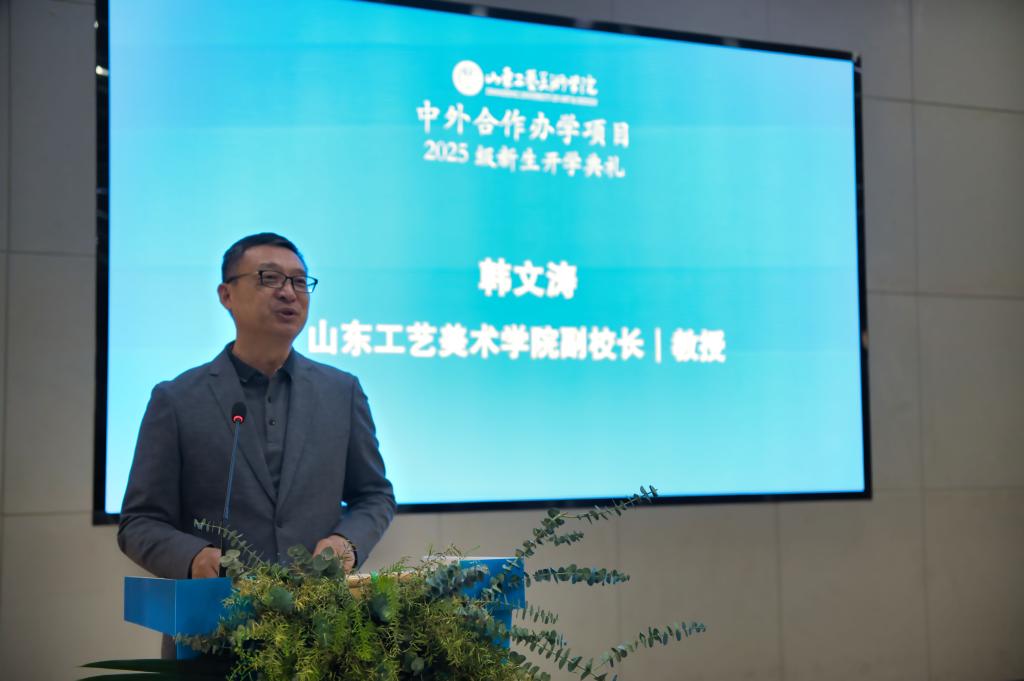 韩文涛在致辞中指出,与俄罗斯圣彼得堡国立工业技术与设计大学的合作办学,是学校国际化进程的重要里程碑,学校将整合中俄优质资源、配备优质师资、构建全新教学模式,为新生梦想启航保驾护航。同时,他对新生提出三点希望:永葆关怀社会的初心,牢记“为人民而设计”的办学宗旨;练就“跨界”本领,构建“设计+”复合型知识结构;成为有“跨文化理解力”的交流使者,将文化差异转化为创新源泉。