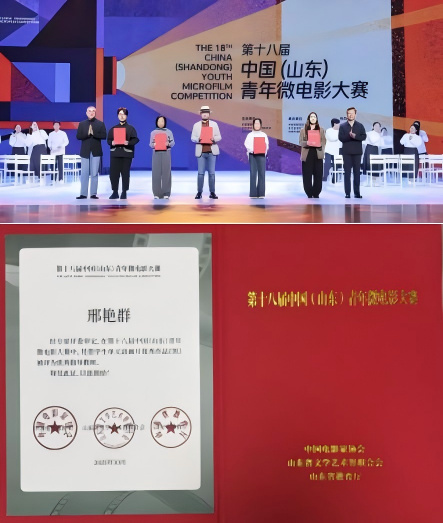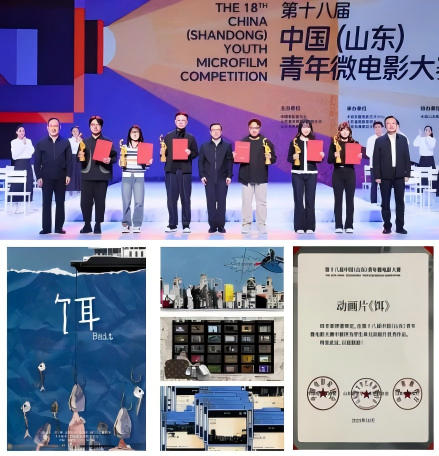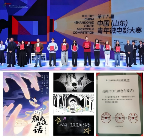 10月20日,第十八届中国(山东)青年微电影大赛荣誉盛典在济南举行。我校数字艺术与传媒学院李静雯、常庆鹏创作的《饵》斩获学生单元优秀作品,李佳楠、刘炳睿、张淄涵、李昊城创作的《听,颜色在说话》获入围作品,邢艳群老师获评优秀指导教师,学校获评优秀组织单位。