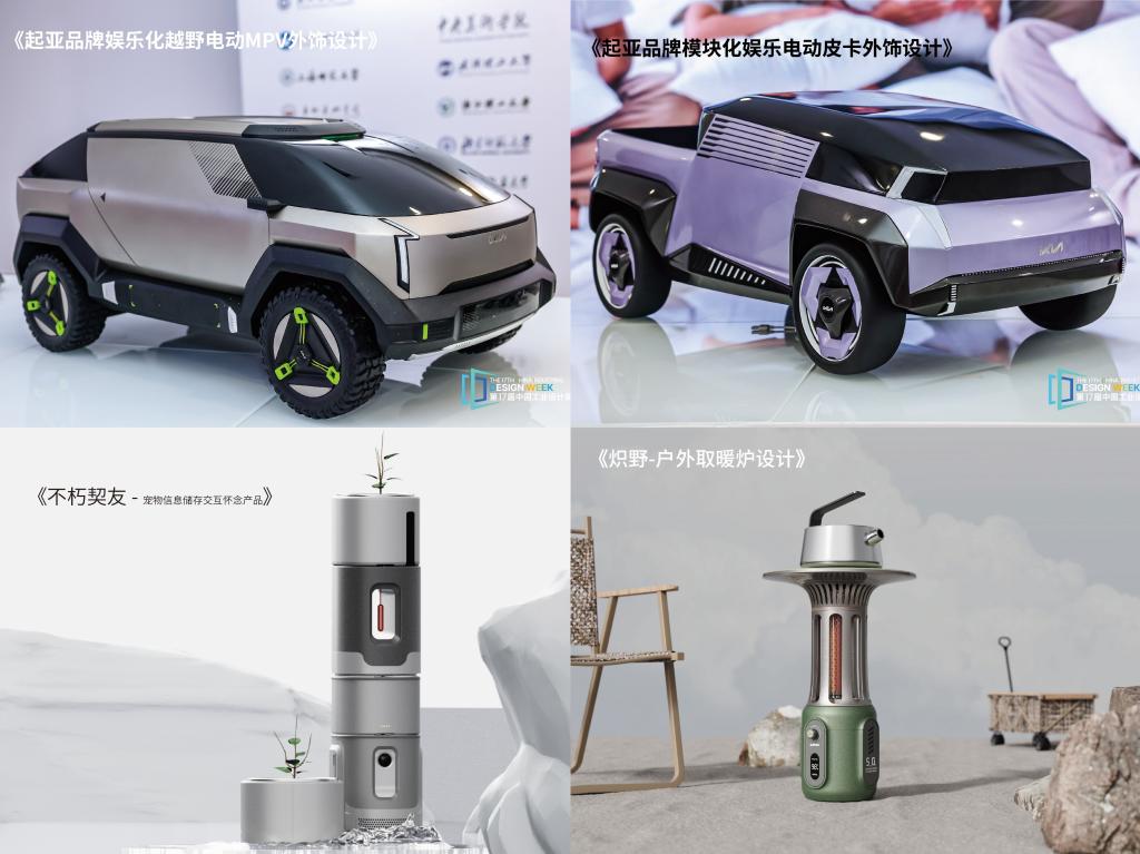 众多优秀作品中,工业设计学院学生创作的《起亚品牌娱乐化越野电动MPV外饰设计》作品脱颖而出,荣获国赛一等奖;《起亚品牌模块化娱乐电动皮卡外饰设计》《不朽契友》《炽野-户外取暖炉设计》获国赛二等奖;《湖泊微塑料过滤收集装置设计》《海洋资源取样浮标设计》《工业油烟管道清洗机器人设计》《Rainbow bubblesAirbag swimsuit》《Beach cleaner沙滩清洁车》《探索宇宙系列—黑洞》《血液卫士—老年慢性肾病AI智能体设计》《医院公共空间场景下的智能消毒机器人设计》获国赛三等奖。这些作品涵盖了智慧出行、疗愈空间、智能装备、创新创意产品设计等多个方向。