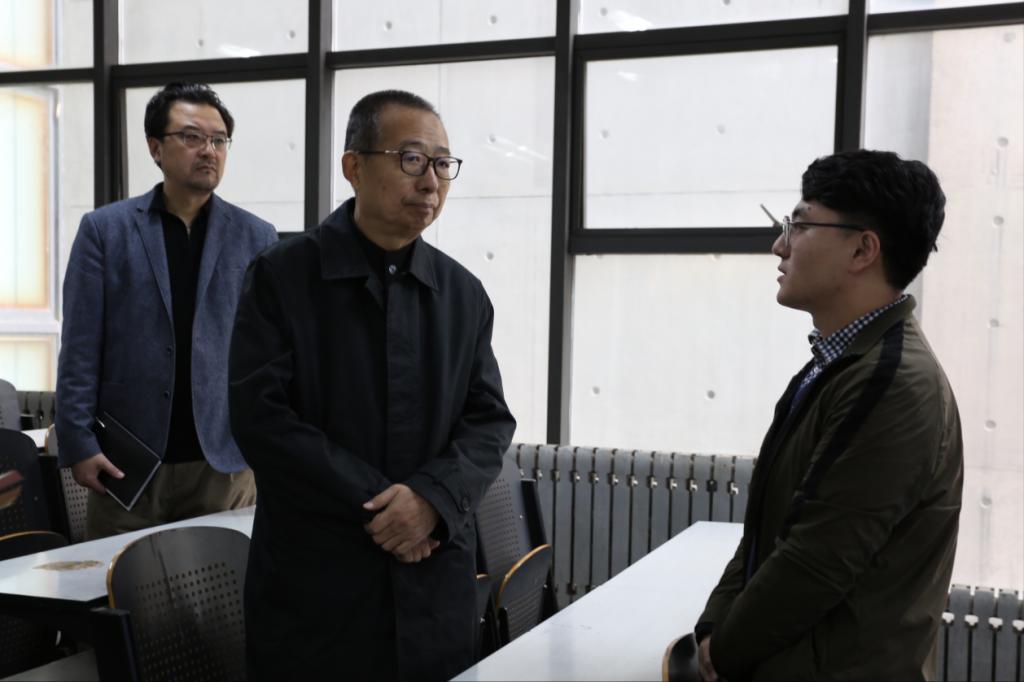 课堂上,邢凯老师从国防的内涵、类型、要素等方面,结合时事,联系实际讲授了中国国防基本情况。听课结束后,潘鲁生与邢凯老师进行了亲切交流。