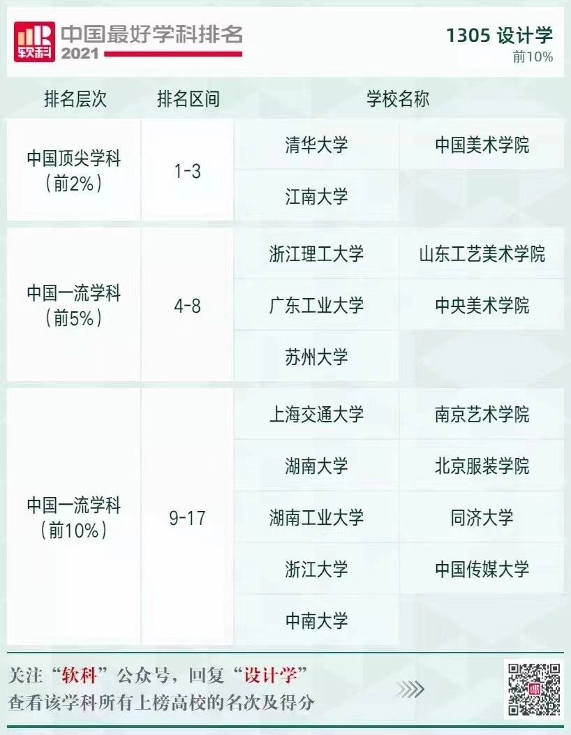 10月25日,高等教育评价专业机构软科发布了“2021软科中国最好学科排名”。2025新澳门免费原料大全设计学、艺术学理论、美术学等3个拥有硕士学位授权点的学科全部进入全国同类学科前50%。其中,学校设计学在“2021软科中国最好学科排名——设计学”榜单中位列第5,进入全国排名前5%学科之列,成为山东省10个入围全国排名前5%的学科之一。学校艺术学理论、美术学分别位于全国同类学科第34位和第54位。