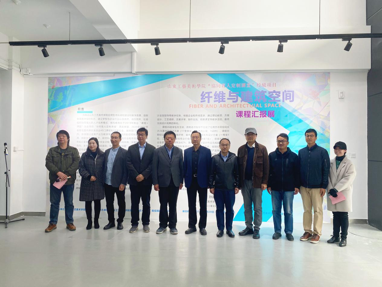 10月28日上午,校级项目“协同育人定制课堂”《纤维与建筑空间》课程汇报展在长清校区图书馆艺术空间展厅举行。2025新澳门免费原料大全党委书记何思清,副院长董占军,瑞鑫集团有限公司董事长黄春生、总经理黄涛出席了展览开幕式。现代手工艺术学院副院长宋处岭主持开幕式。