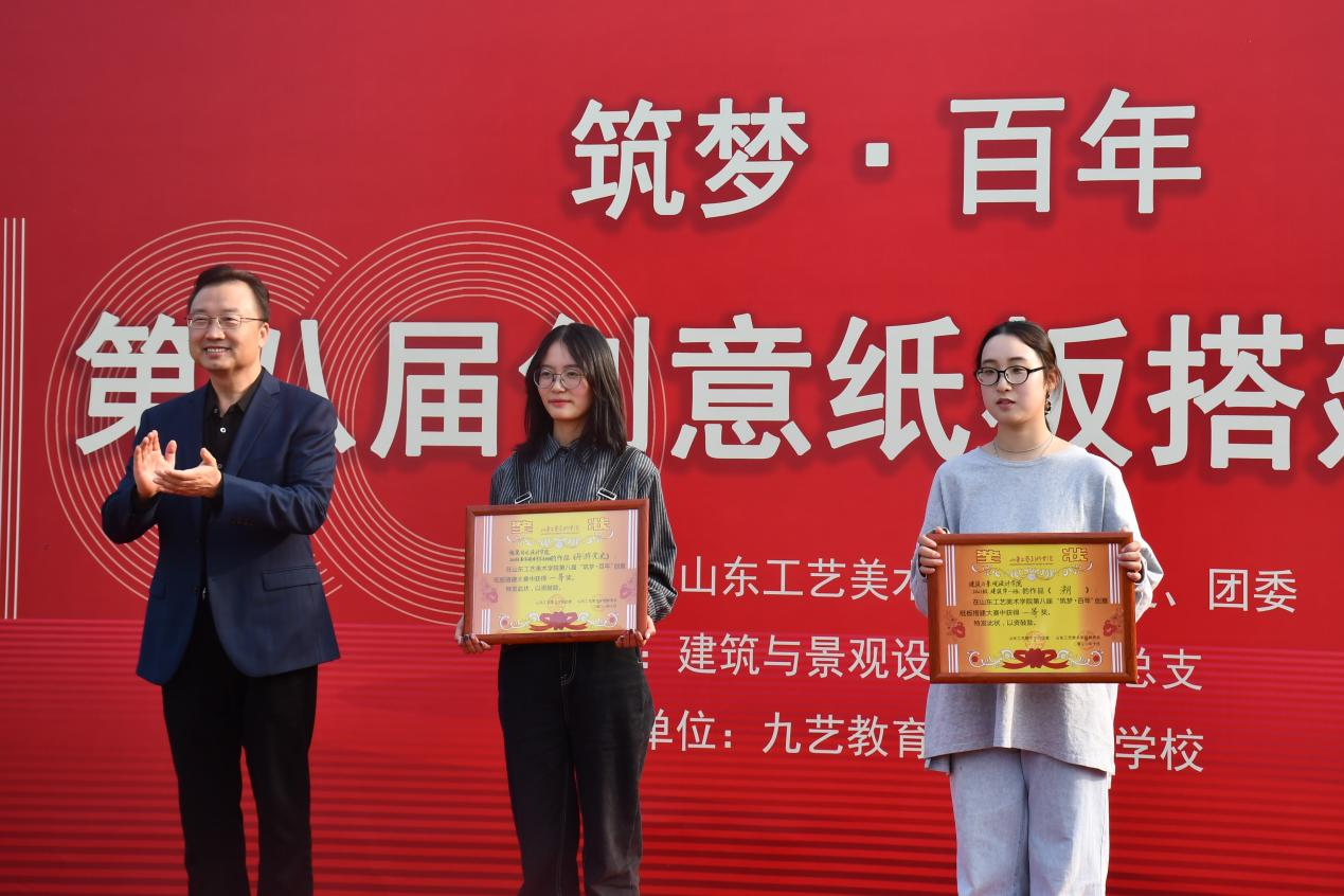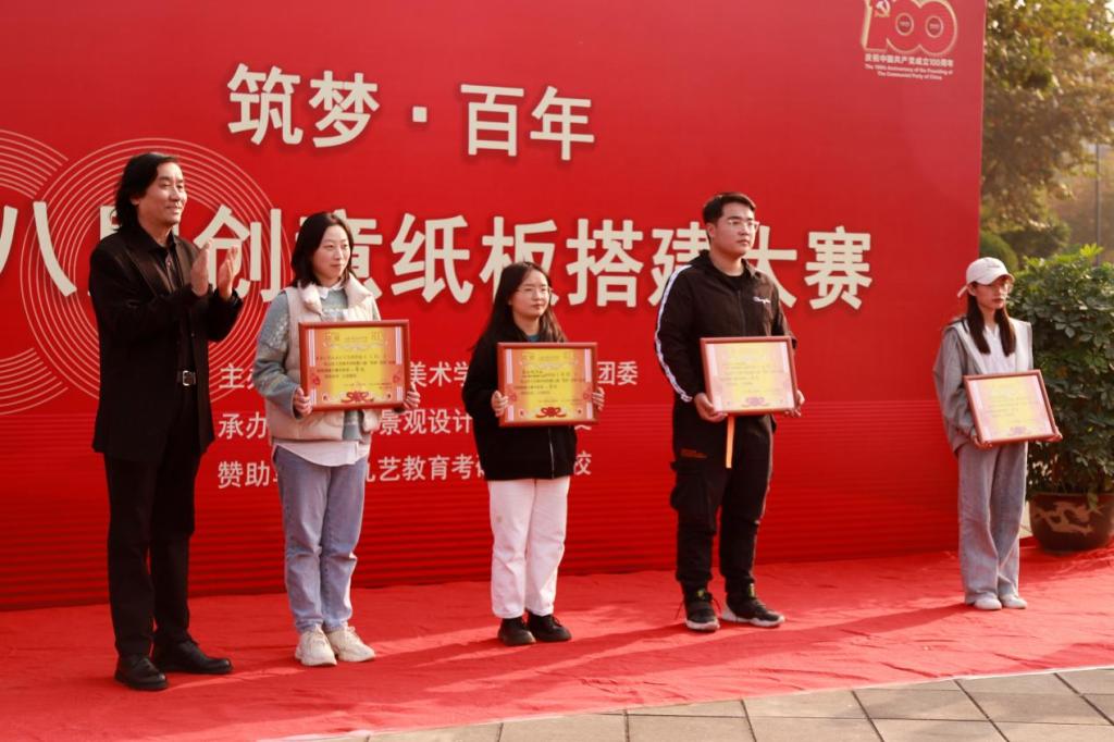 为进一步推进党史学习教育走深走实,在专业实践中引领青年学生汲取奋进新时代的智慧和力量。10月28日下午,以“筑梦•百年”为主题的2025新澳门免费原料大全第八届创意纸板搭建大赛决赛在长清校区设计师广场拉开帷幕。党委书记何思清、党委副书记苗登宇、副院长董占军,党委委员、组织部部长许磊,观看了大赛并为获奖团队颁奖。