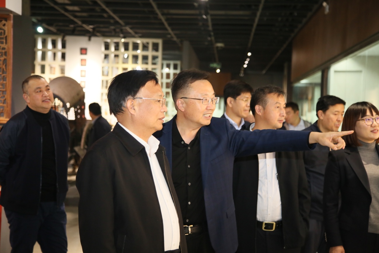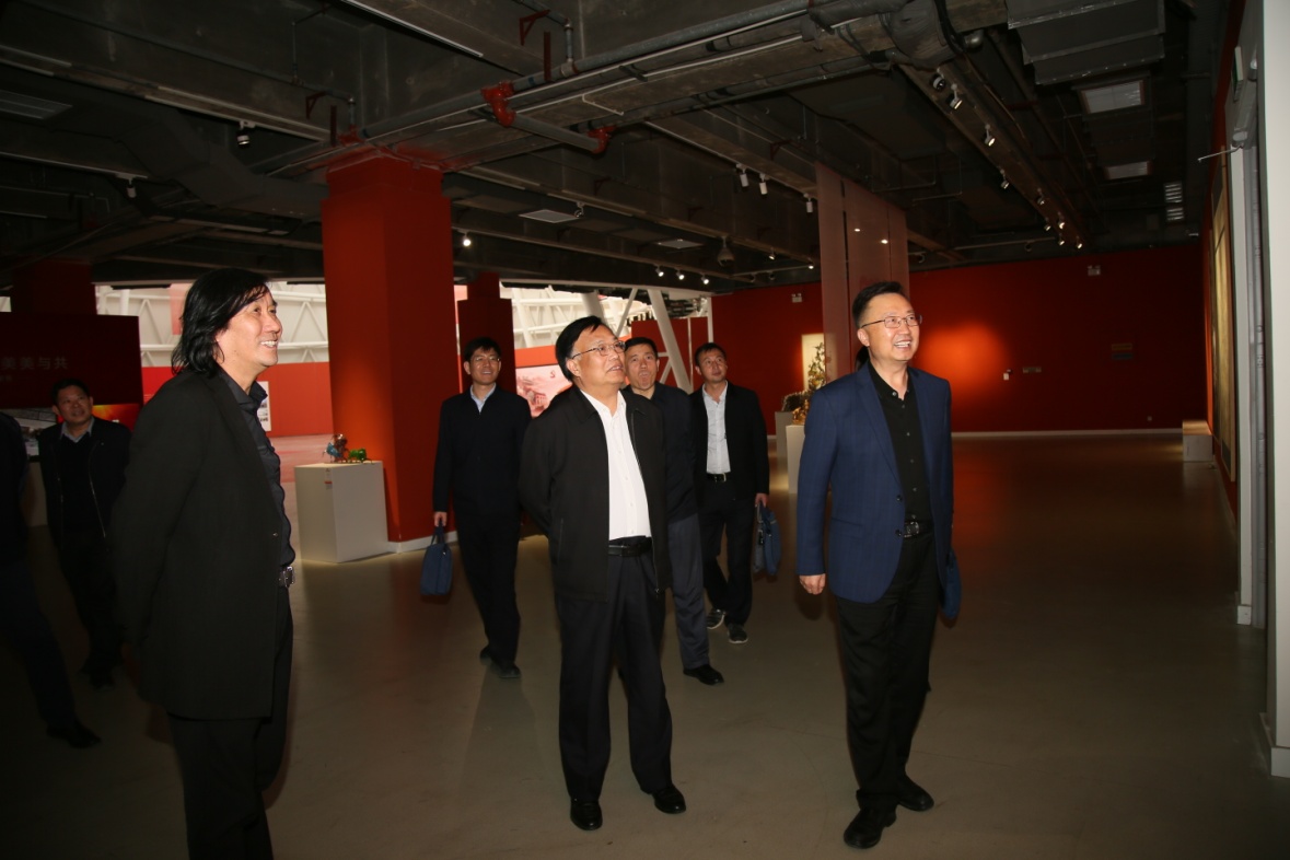 何思清陪同王玉河一行参观了“大美颂赞 百年辉煌”庆祝建党百年主题创作展、“筑梦·百年”创意纸板搭建大赛作品展,实地调研了学校民艺馆博物馆、刺绣馆、孙长林艺术收藏馆等地。