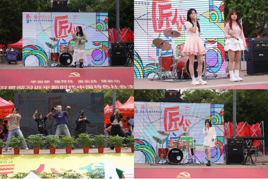 本届匠心集市共设四个主展区及五个专区,除了以在校大学生为主体进行展示的书法与文创、服饰与生活、金工与陶瓷、饰品及其他四个展区外,创新性地向大家呈现了创新创业共同体专区、非遗专区、青春创意基金资助专区、校友交流专区、兄弟院校专区五个专区。开市期间更有来自我校多个社团的精彩节目演出,以及丰富的互动抽奖环节。