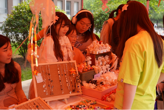 集市火力全开,八方友人齐聚,在匠心集市,体验精品摊位,感受传统工艺融入时尚元素的多元化表达,不仅能带来手造文化的艺术熏陶和视觉盛宴,还突出展示了一批传承传统工艺的创意作品,充分展现了学校的专业特色和我校大学生的创新意识。活动吸引了大批校内外师生参与,大家饶有兴致地挑选心仪的匠心好物,体验别样的文化创意之美,感受中华优秀传统文化的魅力。